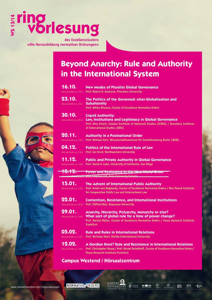 In order to be able to classify the change that the normative order of international politics is undeniably undergoing, leading representatives from political science, law and sociology are invited to discuss their perspectives on authority and rule in international politics.