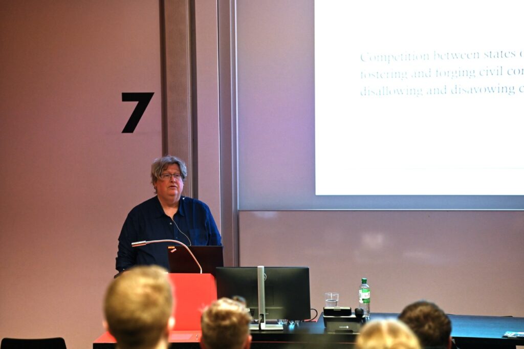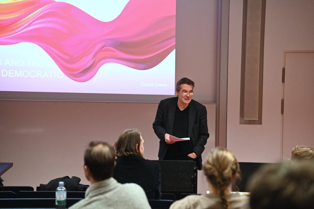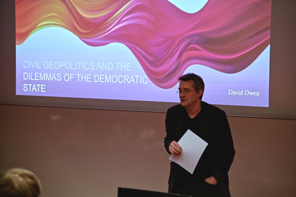On the fourth date of the lecture series “At the Crossroads – The Crisis of Democracy”, David Owen from the University of Southampton presented and explained his concept of civil geopolitics. According to him, “civil geopolitics” is the competition between states for people, which works by creating, advertising and promoting connections within the citizenry as well as rejecting and refusing other connections.