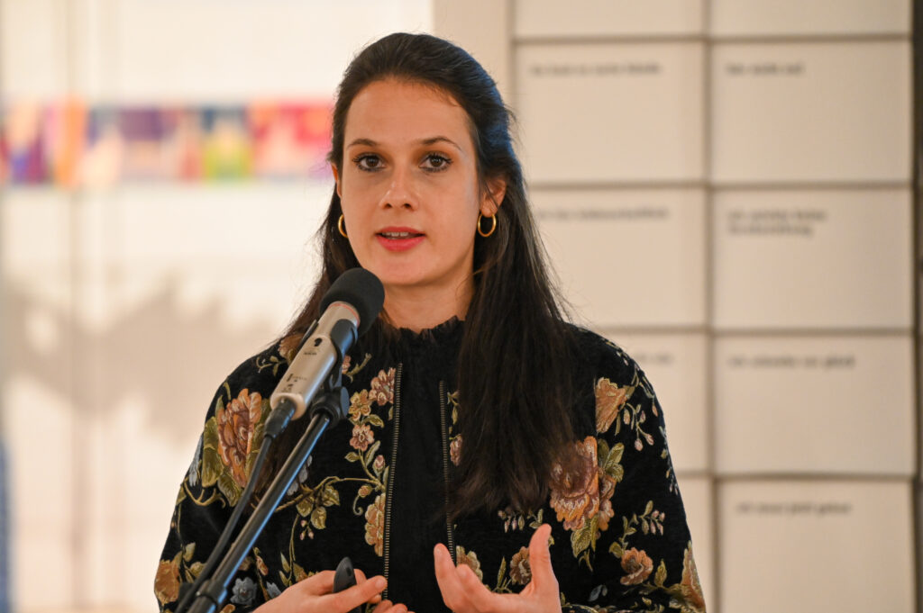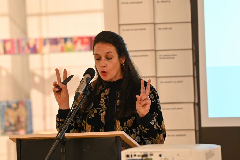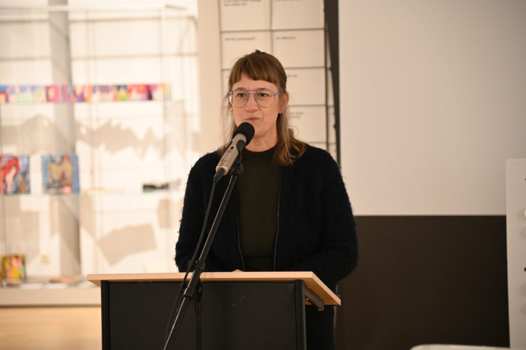 Zur Eröffnung der langjährigen gemeinsamen Vortragsreihe des Klingspor-Museums, der Wirtschaftsförderung der Stadt Offenbach sowie dem Forschungszentrum Normative Ordnungen der Goethe-Universität präsentierte Dorothee Ader, Direktorin des Klingspor Museums, ganz nach Veranstaltungstradition, einen vortragsbezogenen Gegenstand aus dem Ausstellungsfundus des Museums. In diesem Fall eine Erweiterung der Braille-Schrift, welche die Designerin Anna Weinzettl konzipiert hat. Die erweiterte Blindenvollschrift ermöglicht unter anderem, dass blinde und nicht-blinde Menschen gemeinsam und zeitgleich Lesen können.